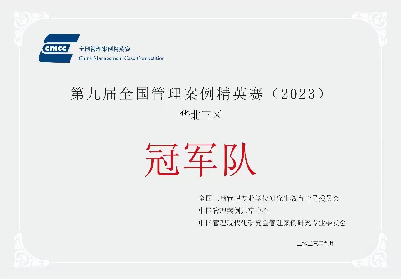 西汉姆联MBA代表队荣膺第九届全国管理案例精英赛华北三区晋级赛冠军