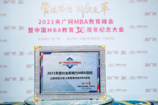 我校MBA项目荣获央广网MBA教育峰会“2021年度社会影响力MBA院校”奖