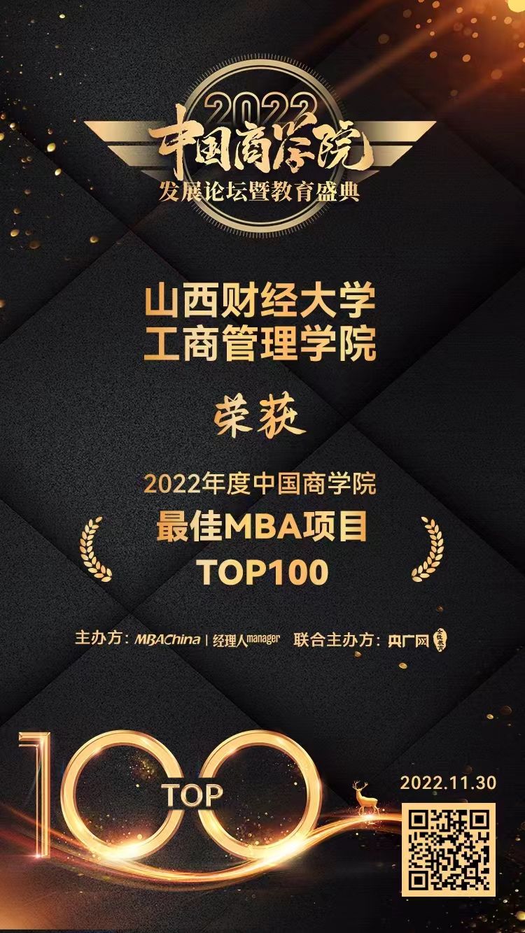 2022年度中国商学院最佳MBA项目TOP100榜单,我院再次进入中国MBA TOP100,去年第72位,今年是63位。