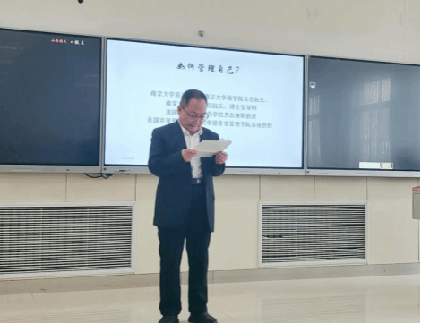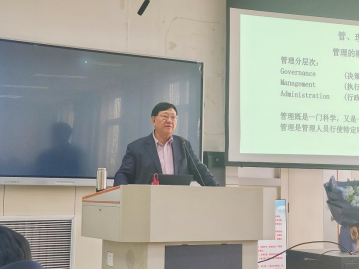 赵曙明教授首先以新时代人工智能发展所产生的人才培养需求为背景,以“一些医生为什么治不了自己的病、老师为什么教育不好自己的孩子,哲学家为什么走向偏执”的问题引起了师生们对管理自己重要性的思考。接下来,赵曙明教授以德鲁克跨越时空的管理思想为基础,旁征博引,阐释了管理的真谛,以德鲁克的著作《21世纪的管理挑战》中的《如何实现自我管理》一章内容为蓝本,指出管理自己一是要对自己有深刻的认识,不仅清楚自己的优缺点,也知道自己是怎样学习新知识和别人共事的,并且还明白自己的价值观是什么,自己属于何处,自己又能在哪些方面做出最大贡献;二是管理好人际关系,尊重每一个个体,并积极沟通;三是管理后半生,发展第二职业。最后,赵曙明教授与师生们分享了他结合自身经历所总结的8条感悟与随想,表示人是可以塑造的;做人、做事、做学问相互联系,做学问先做人,做人的核心是诚信与担当;吃苦是一种能力,年轻人需要具备创新、吃苦和服务三项能力;三人行必有我师,名师对一个人的成长尤为重要;帮助他人就是帮助自己,这是人际交往的本质;培养并具备知识、见识、胆识和共识;瞄准方向、抬头看路、低头拉车;坚定目标,努力成为高胜任素质、高积极性、高协作性、高自律性的“四高型”人才。