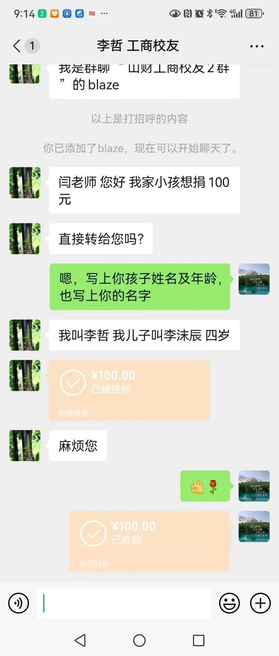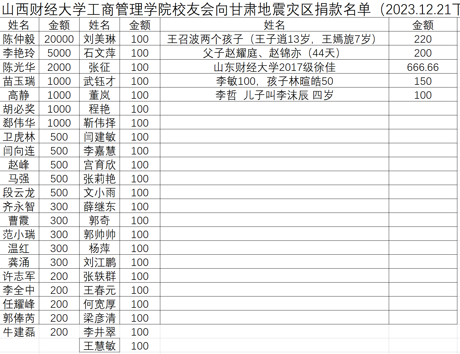 看到我们的倡议,尽管不是我们的校友,其他高校的校友也积极捐款,希望通过我们校友会的组织向灾区尽绵薄之力,祝愿灾区早日风调雨顺。