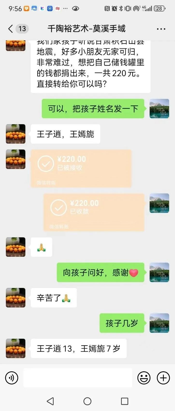 校友7岁和13岁的小孩子看到电视中灾区小朋友们的现状十分难过,也把自己储蓄罐积攒的钱捐给灾区小朋友,帮助他们重建家园。这样纯真的善举也感染了其他校友和小朋友们,纷纷主动给灾区献爱心。