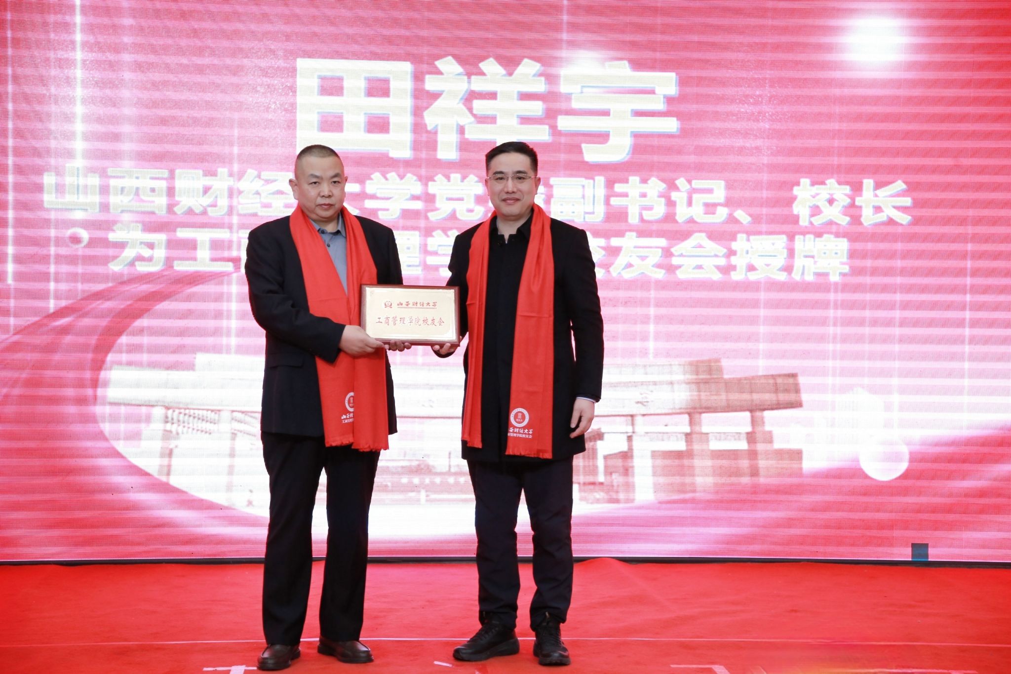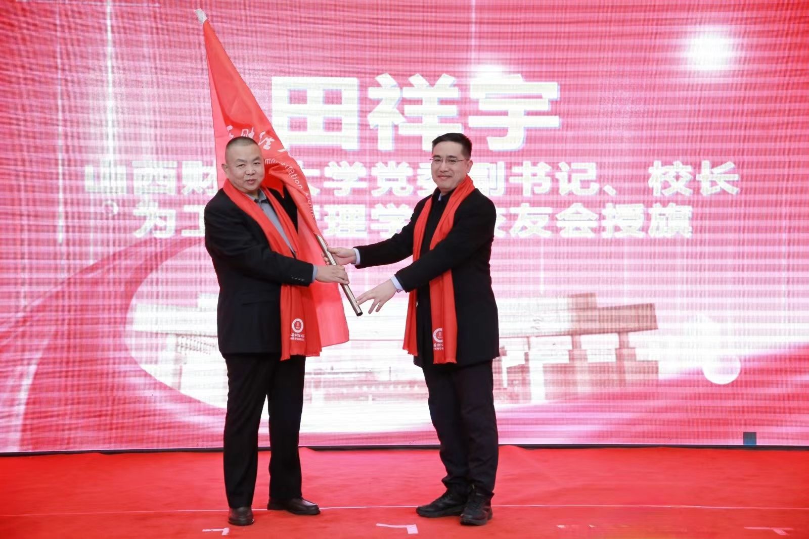 田祥宇为必威西汉姆官网平台校友会授牌、授旗。