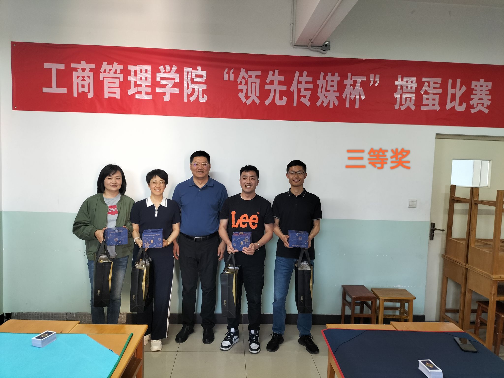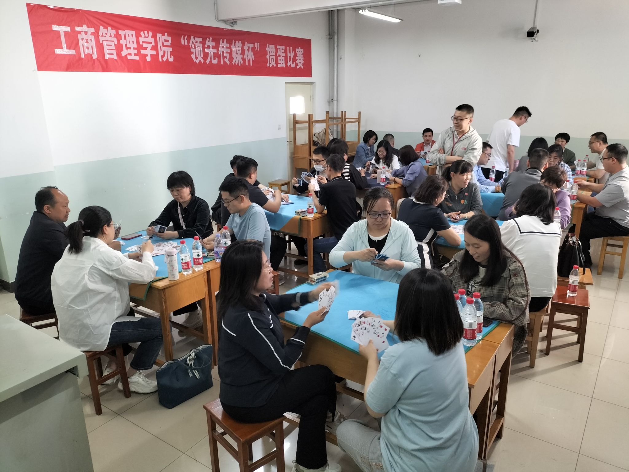为丰富教职工精神文化生活,加强教职工及校友之间的深入交流,增强学院凝聚力,经过长期谋划和精心筹备,5月7日下午,我院成功举办了首届“领先传媒杯”掼蛋比赛。