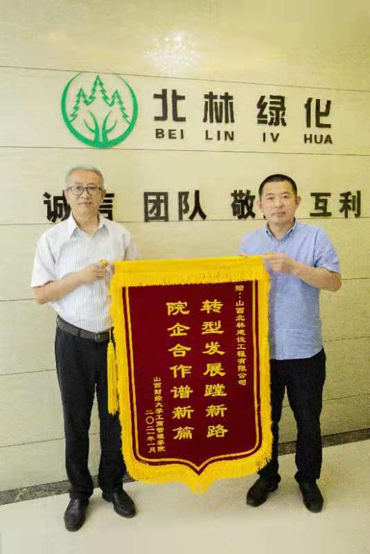 会上,薛继东副院长与王建勤董事长代表双方单位签署了战略合作协议。同时,郜军书记代表学院向山西北林建设工程有限公司授牌和赠送荣誉锦旗,并为王建勤董事长颁发了学院客座教授聘书。