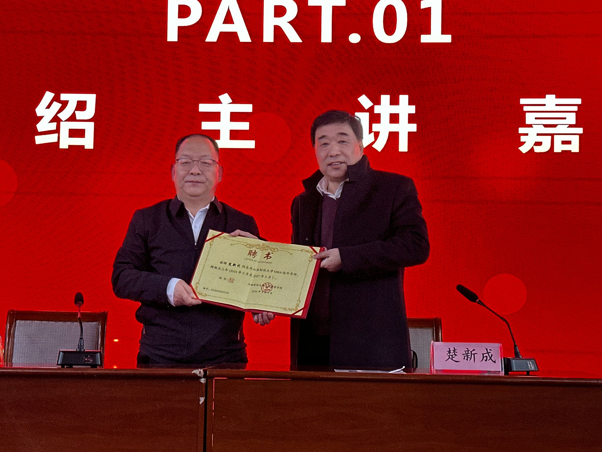 讲座开始前,西汉姆联必威西汉姆官网平台院长、MBA教育中心主任卫虎林教授为楚新成先生颁发了MBA校外导师聘书。