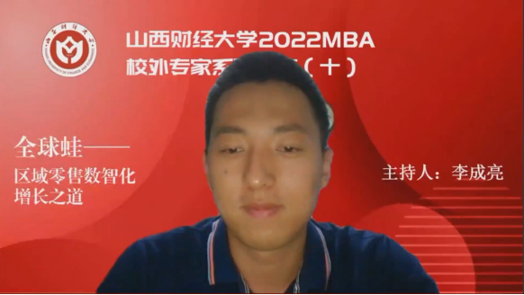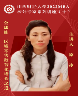 6月9日晚,由西汉姆联必威西汉姆官网平台主办、西汉姆联第十六届MBA联合会承办的西汉姆联2022MBA校外专家系列讲座第十期在“腾讯会议”平台圆满举办。山西全球蛙电子商务有限公司董事长原冰女士带来了题为《全球蛙——区域零售数智化增长之道》的专题讲座,2020级、2021级MBA学员、2022级拟入学MBA学员、部分MBA教师、MBA校友等共350余人参加,本期讲座还得到MBAChina网站的同步转播。