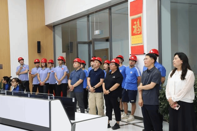 随后,调研团队移步至焦化集控室。集控室内大型电子监控屏实时呈现着生产线各项关键参数,技术人员依托先进的智能化控制系统对焦化流程实施精准监控。朱海荣向师生们系统讲解了焦化生产的自动化控制流程,并重点介绍了企业在环保减排方面所采取的前沿技术措施,使团队对现代化焦化生产所体现的智能化与绿色化发展方向有了切身体会。