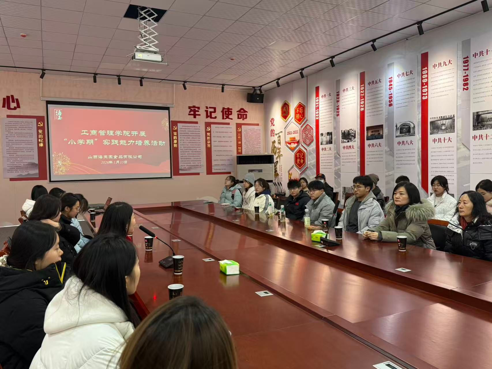 1月15日上午,我院工商管理专业2025级学生及部分教师由管理原理教研室主任张莉艳老师带队,参观了山西海玉园食品有限公司,此次“小学期”实践活动得到了公司的大力支持和热情接待。