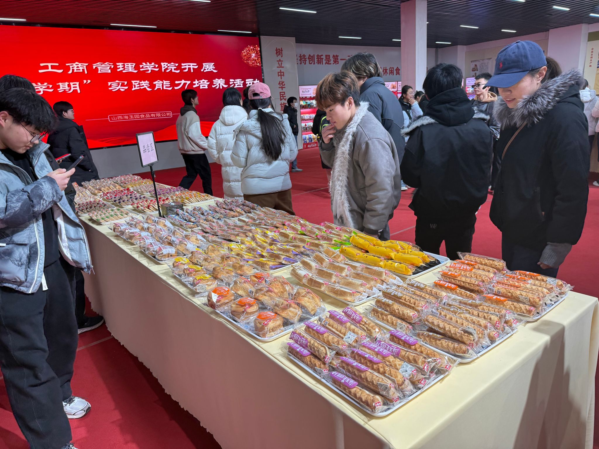 在产品品鉴环节,公司现场展示了包括石头饼、缸炉饼、面包、锅巴等多个系列,师生们从经典传统口味到创新研发品类,直观感受了海玉园产品的品质与特色,详细了解了海玉园丰富的产品矩阵及其背后的研发理念与市场定位。这一环节不仅增强了参观的互动性与趣味性,更让师生们对企业扎实的产品力和持续创新能力有了具体而深刻的认识。