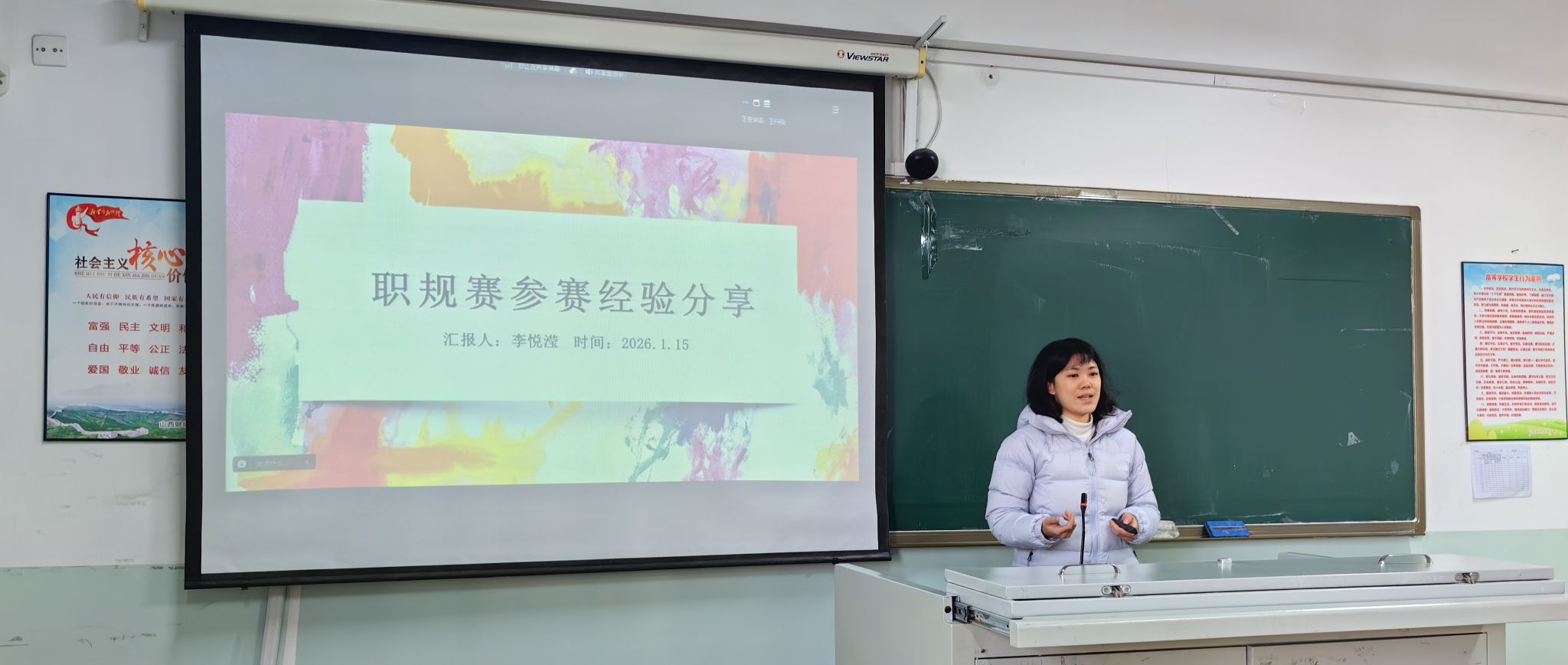 第三届职规赛西汉姆联优秀指导教师、人力资源管理专业教师王丹阳,围绕大赛政策解读、参赛逻辑与备赛策略等内容,系统讲解了成长赛道与就业赛道的核心要求与评审重点,同时结合评审标准分析了评委常见提问方向,并就语言表达、逻辑组织、仪态管理和临场应对等方面提出了针对性建议。