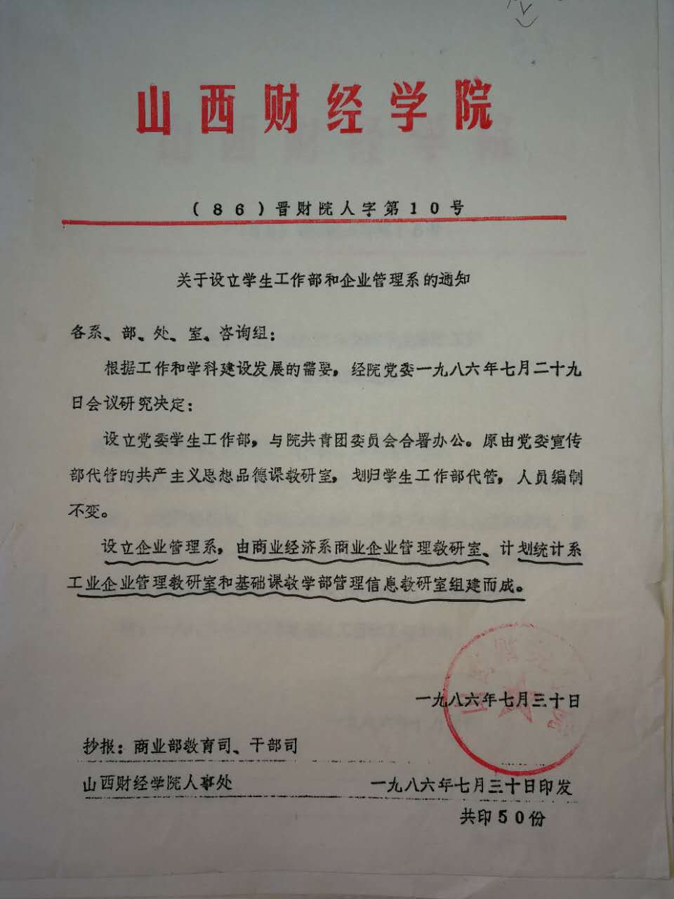 西汉姆联必威西汉姆官网平台,起步于1983年原山西财经学院贸易经济系的商业企业管理专业。1986年,原山西财经学院成立企业管理系,1997年两校合并时和原山西经济管理学院市场学系合并成立工商管理系,2001年升格为必威西汉姆官网平台。到2016年,学院已走过了整整三十年。